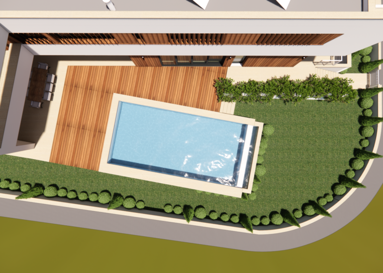 SITUATED IN A RESIDENTIAL AREA, OUTSIDE LIMASSOL TOWN. THE PROJECT INCLUDES TWO SEPARATE HOUSES DESIGNED AS ONE ENTITY ON THE OUTSIDE, WITH A SHAREDGARDEN, POOL & BBQ AREA FOR THE FAMILIES COMMON ACTIVITIES. EACH HOUSE HAS ITS PRIVATE & AUXILIARY SPACES AS AN INDIVIDUAL FAMILY AND A DIFFERENT ENTRANCE AND PARKING SPACE.