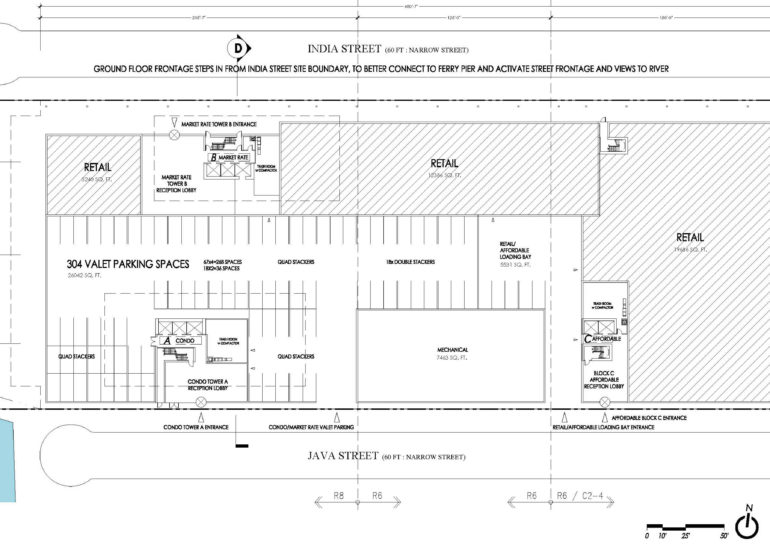 CONCEPT TO SOLVE THE CHALLENGE OF A SUPER-DENSE PROGRAMME OF RESIDENTIAL ACCOMMODATION - CONDOS, MARKET RATE & AFFORDABLE - ON A TIGHT EAST RIVER SITE WITH COMMERCIAL AT THE GROUND FLOOR LEVERAGING THE RIVER-PIER SIGNIFICANT FOOT TRAFFIC