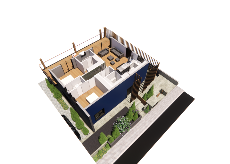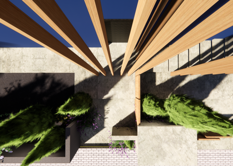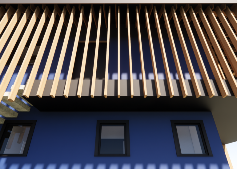 SITUATED IN AYIOS ATHANASIOS AREA. DESIGNED FOR A PILATES INSTRUCTOR. THE HOUSE IS ON THE 1ST FLOOR WITH A PRIVATE STAIRCASE LEADING TO ITS ENTRANCE. PRIVACY IS OBTAINED WITH VERTICAL WOODEN ELEMENTS FORMING THE ELEVATION AND LOCATING THE TWO DIFFERENT ENTRANCES. THE PILATES STUDIO IS DEVELOPED ON THE GROUND FLOOR FOR ACCESIBILITY.