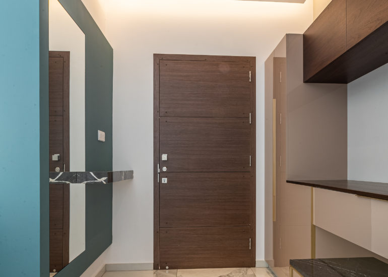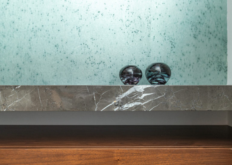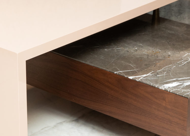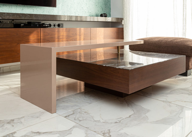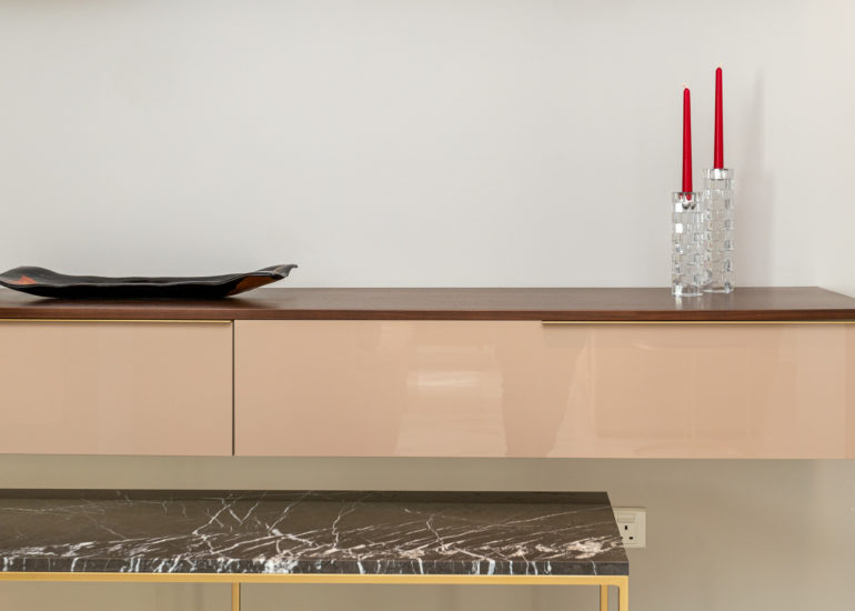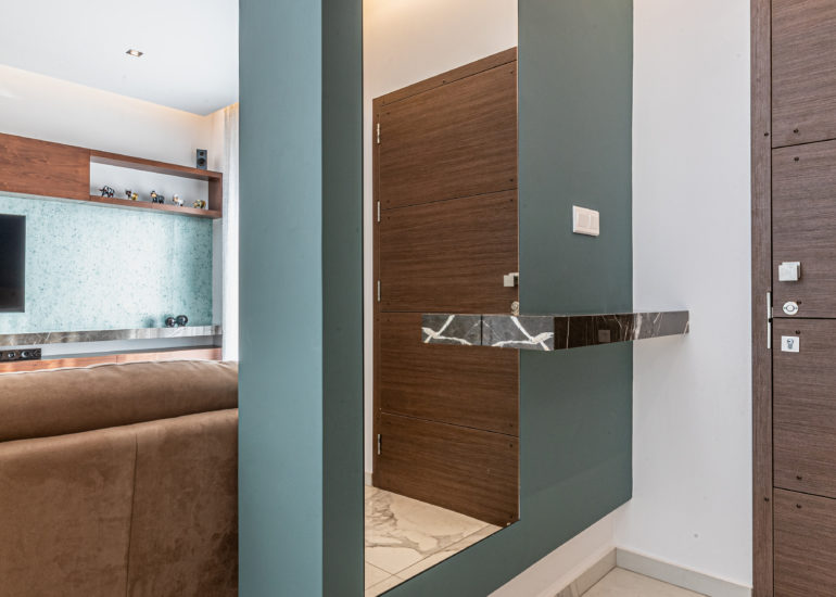 REFURBISHMENT OF THE GROUND FLOOR OF AN EXISTING HOME. ELEGANT CUSTOM MADE FURNITURE WITH FINE MATERIALS, DELICATELY CRAFTED WALNUT WOOD VENEER PANELS AND SOPHISTICATED DARK MARBLE,DETAILS, ALL TO FIT THE SPACE'S NEED FOR RELAXATION & SOCIAL USE